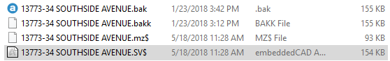 3. Sort the list of files you see here by name, and then scroll down until you locate up to 4 files with the name of your drawing.