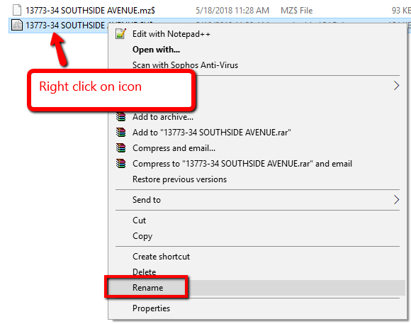 6. Right click on each file and select the option to rename:
